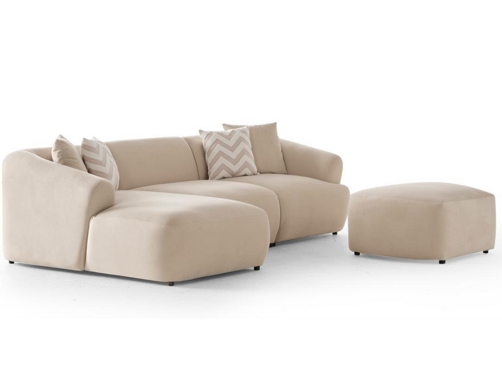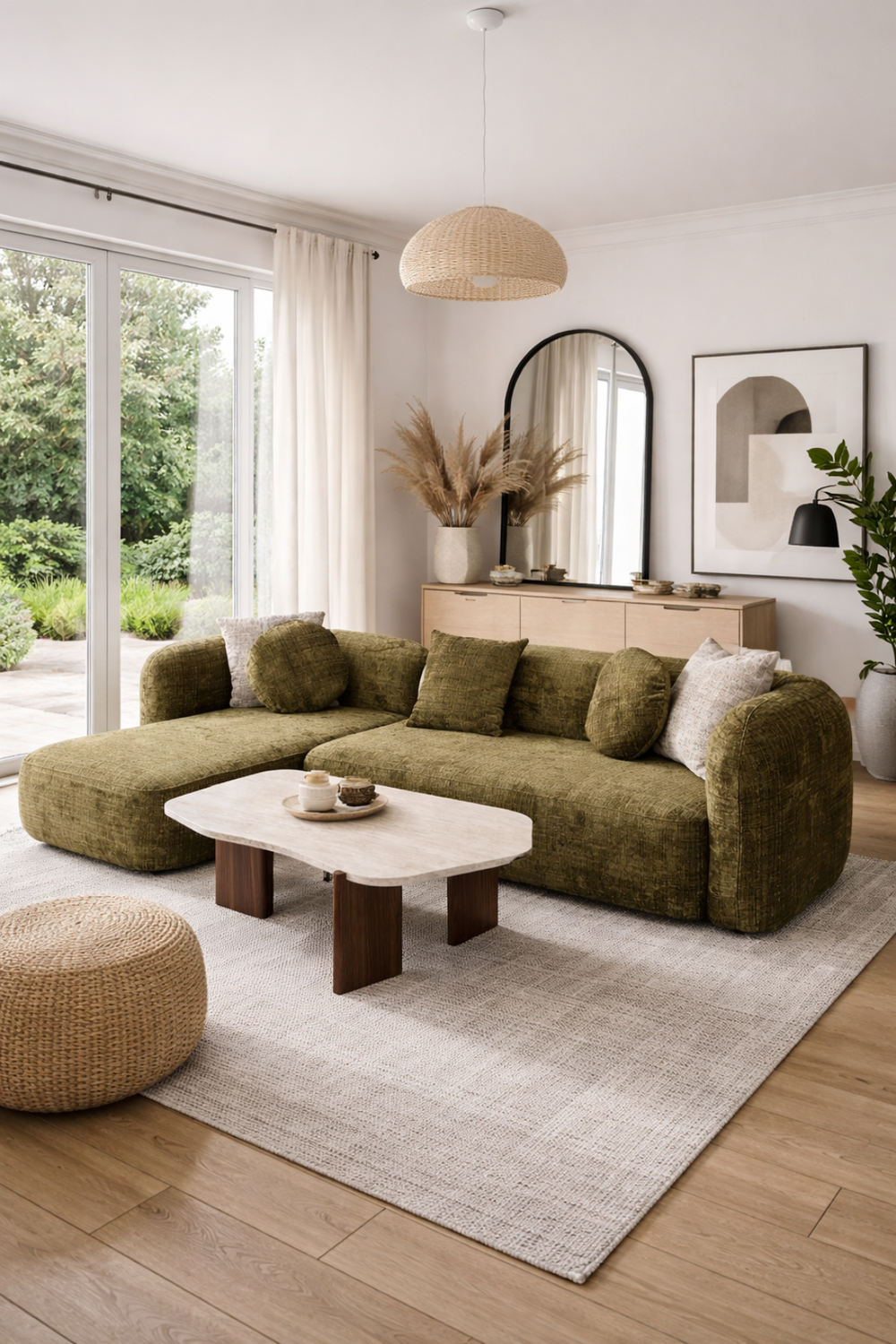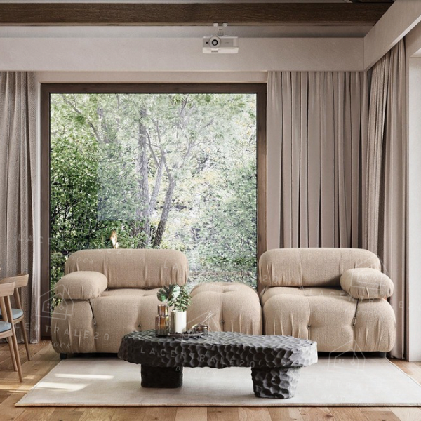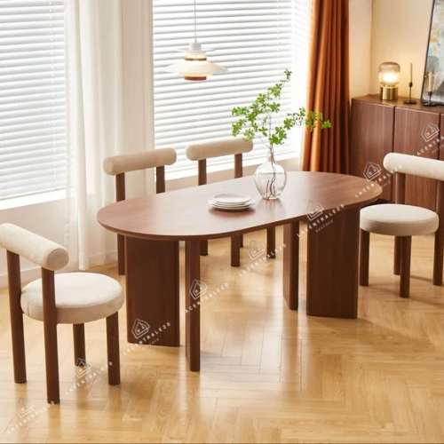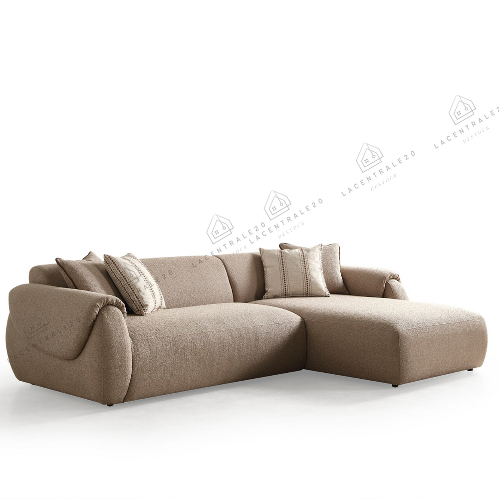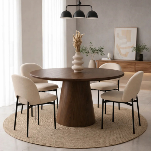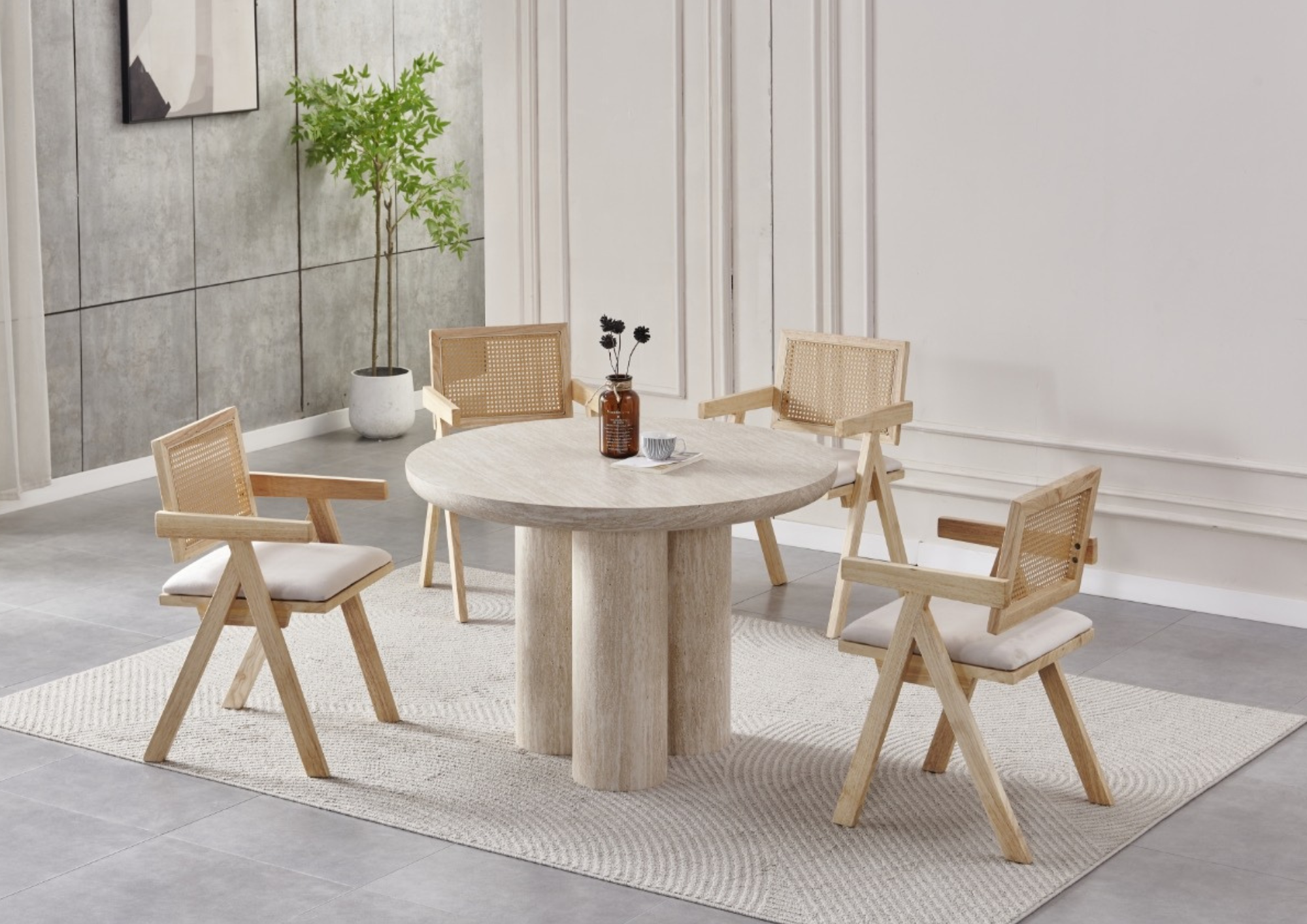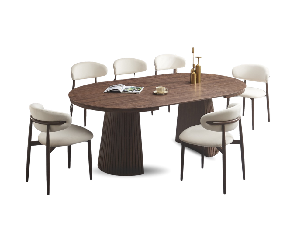 La table Sahara allie design travertin et fonctionnalité. Compacte au quotidien, généreuse quand vous recevez.