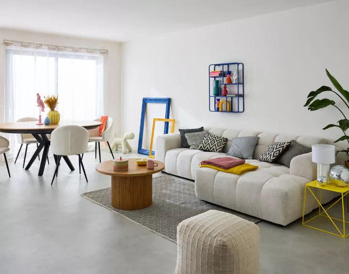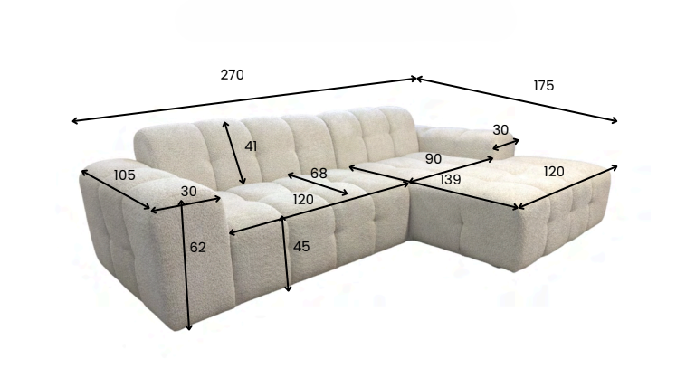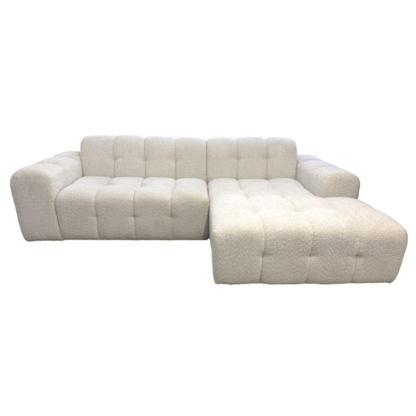 Le canapé Caprice allie confort moderne et design original grâce à son revêtement en laine bouclée. Ses formes généreuses et son assise accueillante en font un choix idéal pour un salon cosy et contemporain. Disponible en angle gauche ou droit (vu de face), il s’adapte facilement à la configuration de votre espace.