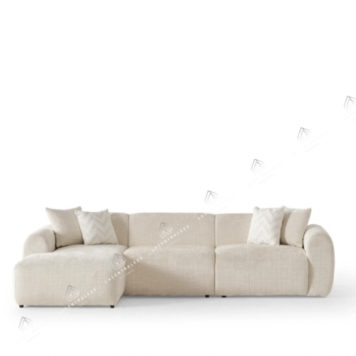Découvrez le canapé Cloud, un modèle moderne aux lignes douces et arrondies, idéal pour créer un salon lumineux et épuré. Son revêtement en tissu Marbella crème, élégant et naturel, apporte une ambiance chaleureuse et minimaliste, parfaite pour les intérieurs contemporains.