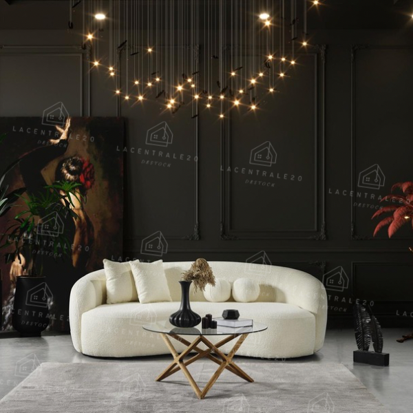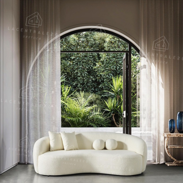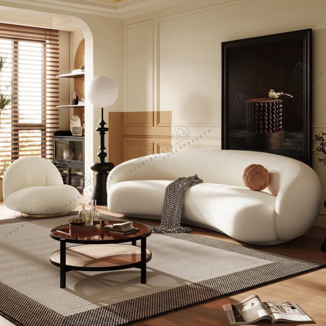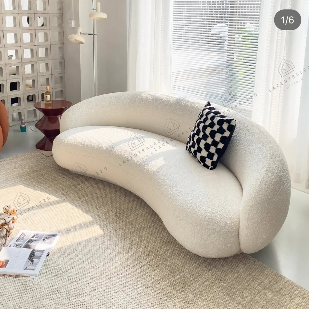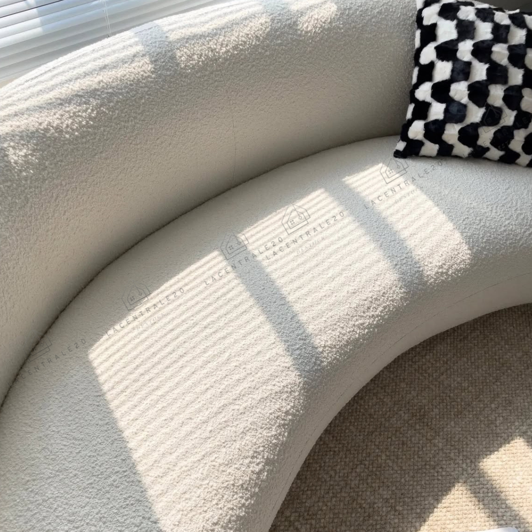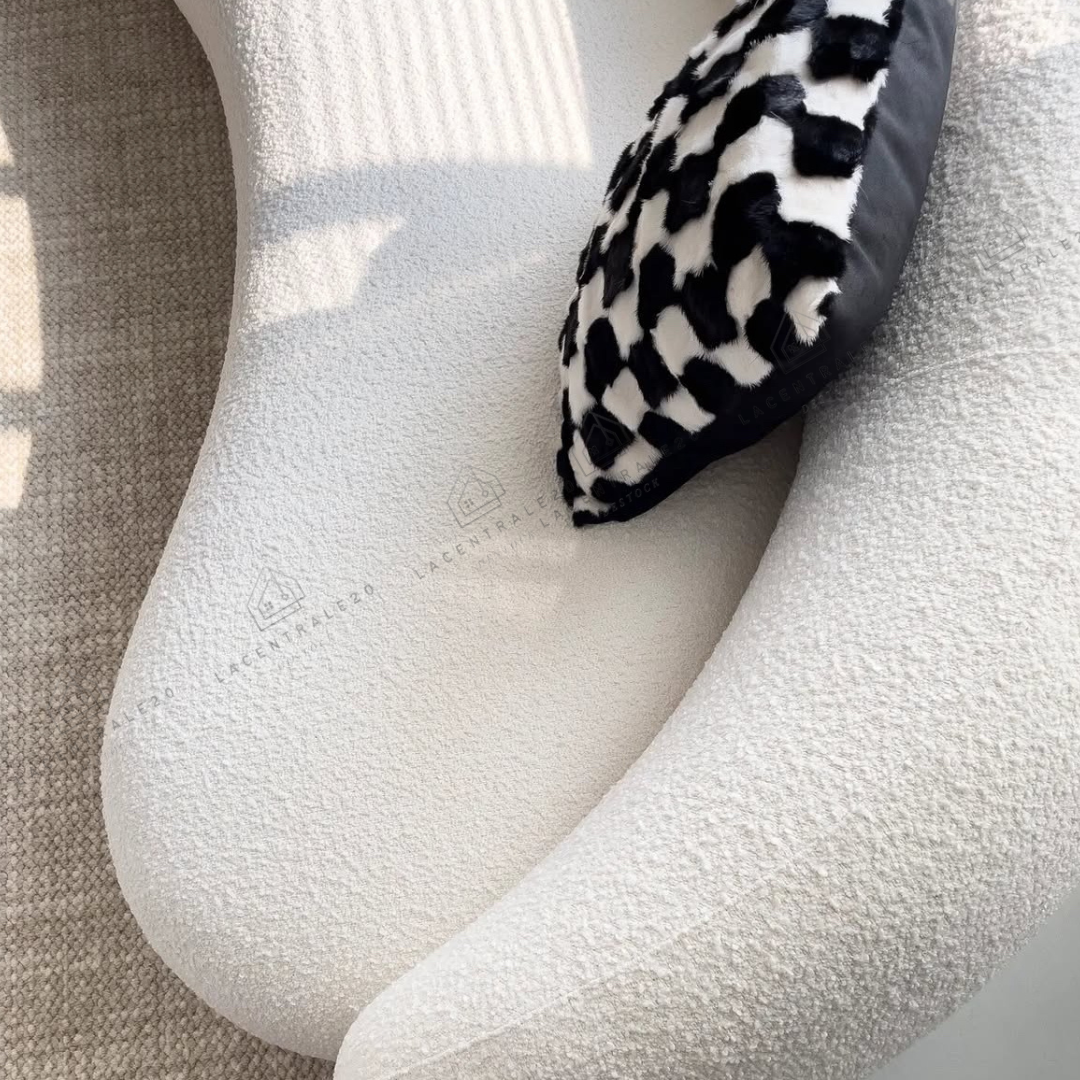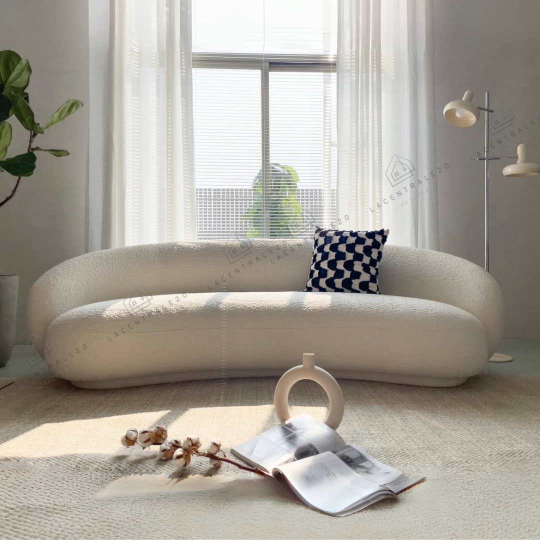 Le canapé Lisbon se distingue par son design arrondi et son allure moderne. Son revêtement en laine bouclée ou velours blanc apporte douceur, élégance et luminosité à votre intérieur. Avec son assise confortable et son style épuré, il convient parfaitement aux salons modernes, cosy ou minimalistes.