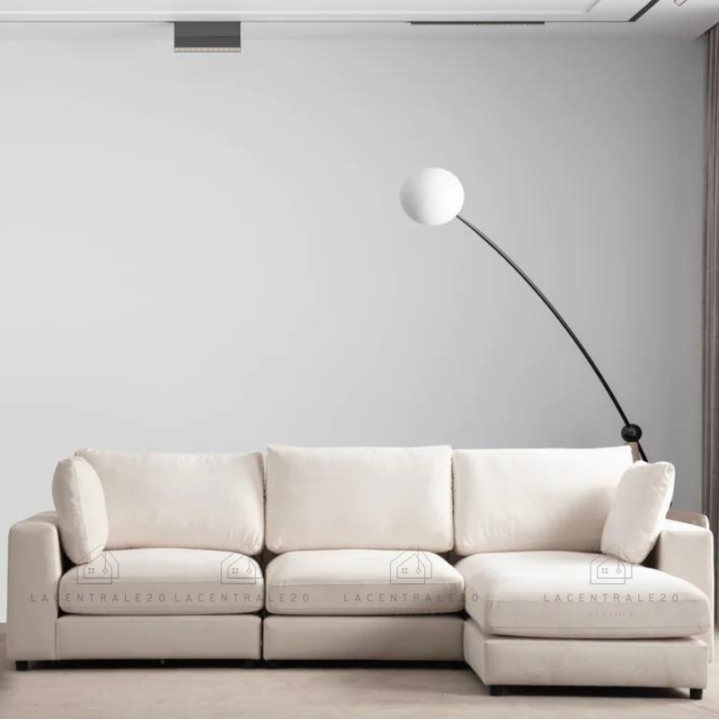Ce canapé Julie 3+1 modulable en velours écru allie confort absolu et design épuré. Son style moderne et atypique s'intègre parfaitement dans tous les intérieurs, offrant une touche élégante et chaleureuse. Idéal pour les moments de détente en famille ou entre amis, il séduit par son assise généreuse et sa structure confortable, pensée pour un usage quotidien.