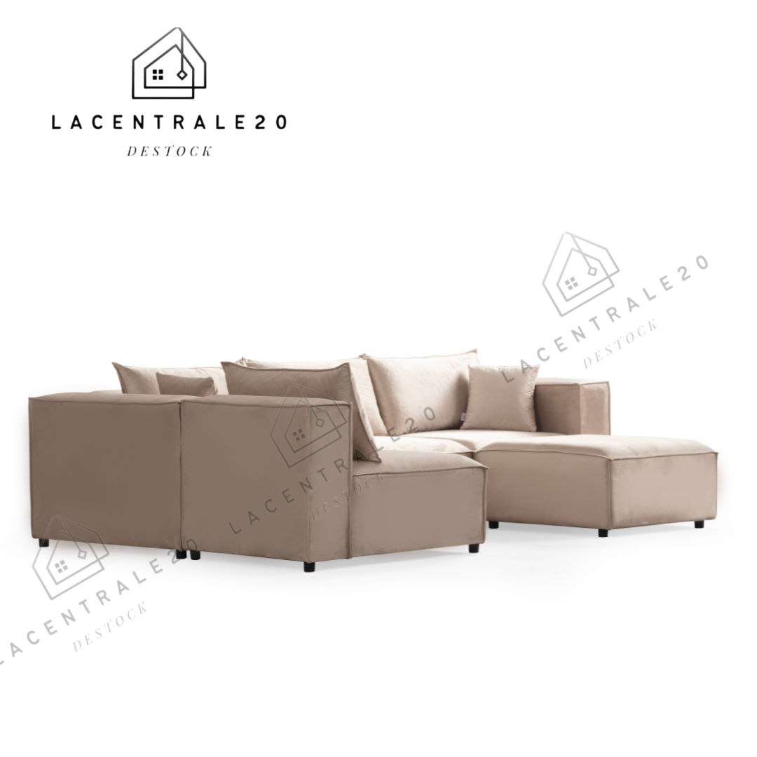 - Dimensions globales : Longueur 4 modules: 400cm , haut. 45 cm, profondeur assise 85 cm