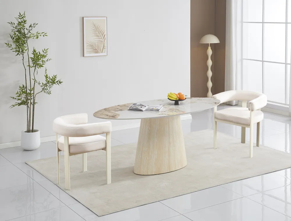 La table repas OVO séduit par son design contemporain et ses matériaux élégants.