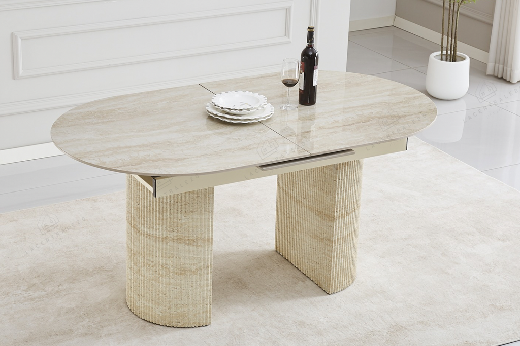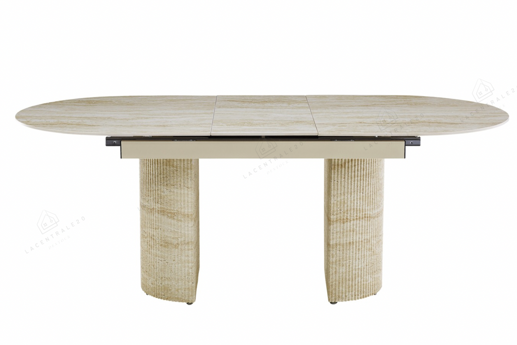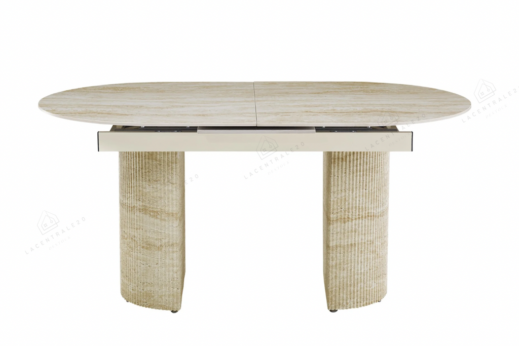 Table extensible SAHARA – Effet travertin brillant (160–200 cm)